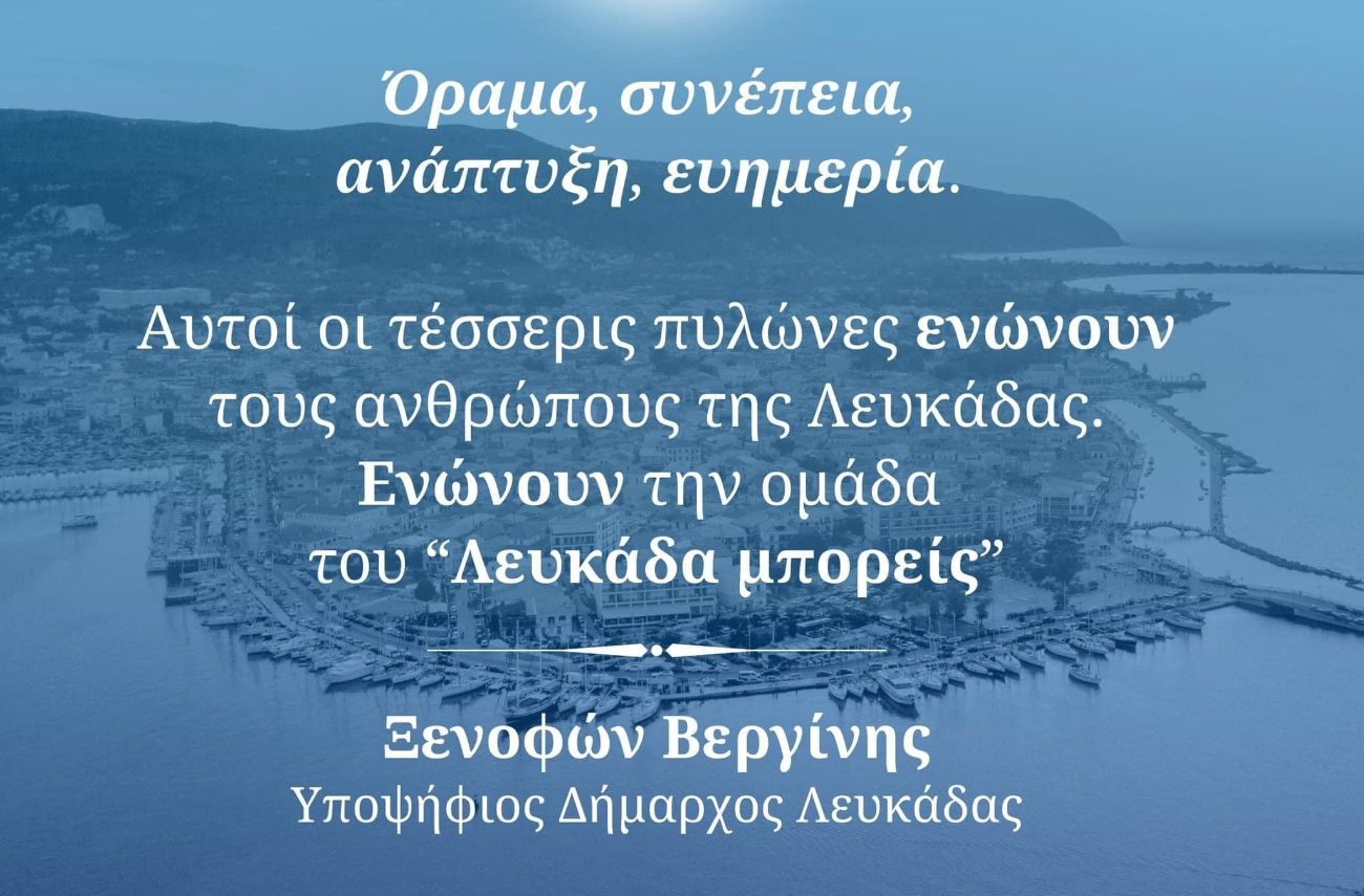 Πρόσκληση Ξενοφώντα Βεργίνη Υποψήφιος Δήμαρχος Λευκάδας “Λευκάδα μπορείς”, για τους συμπατριώτες ετεροδημότες της Λευκάδας, του Καλάμου και του Καστού στην
