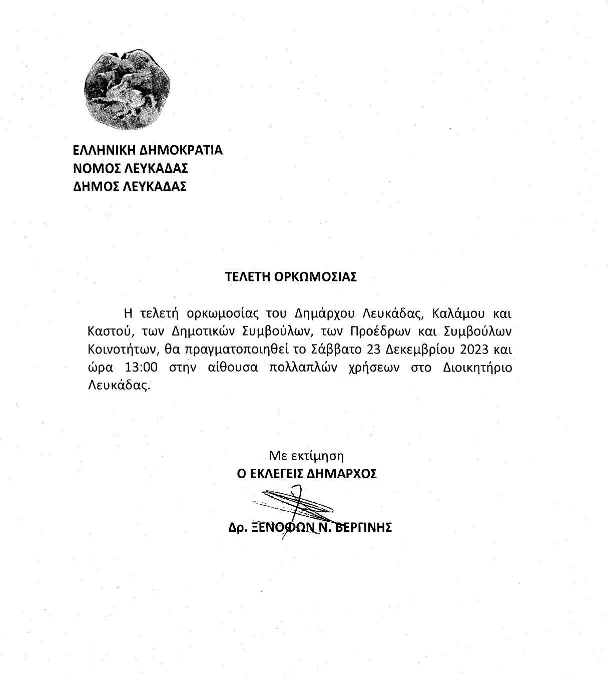 Συνεδρίαση Δημοτικού Συμβουλίου Λευκάδας 02/01/2024