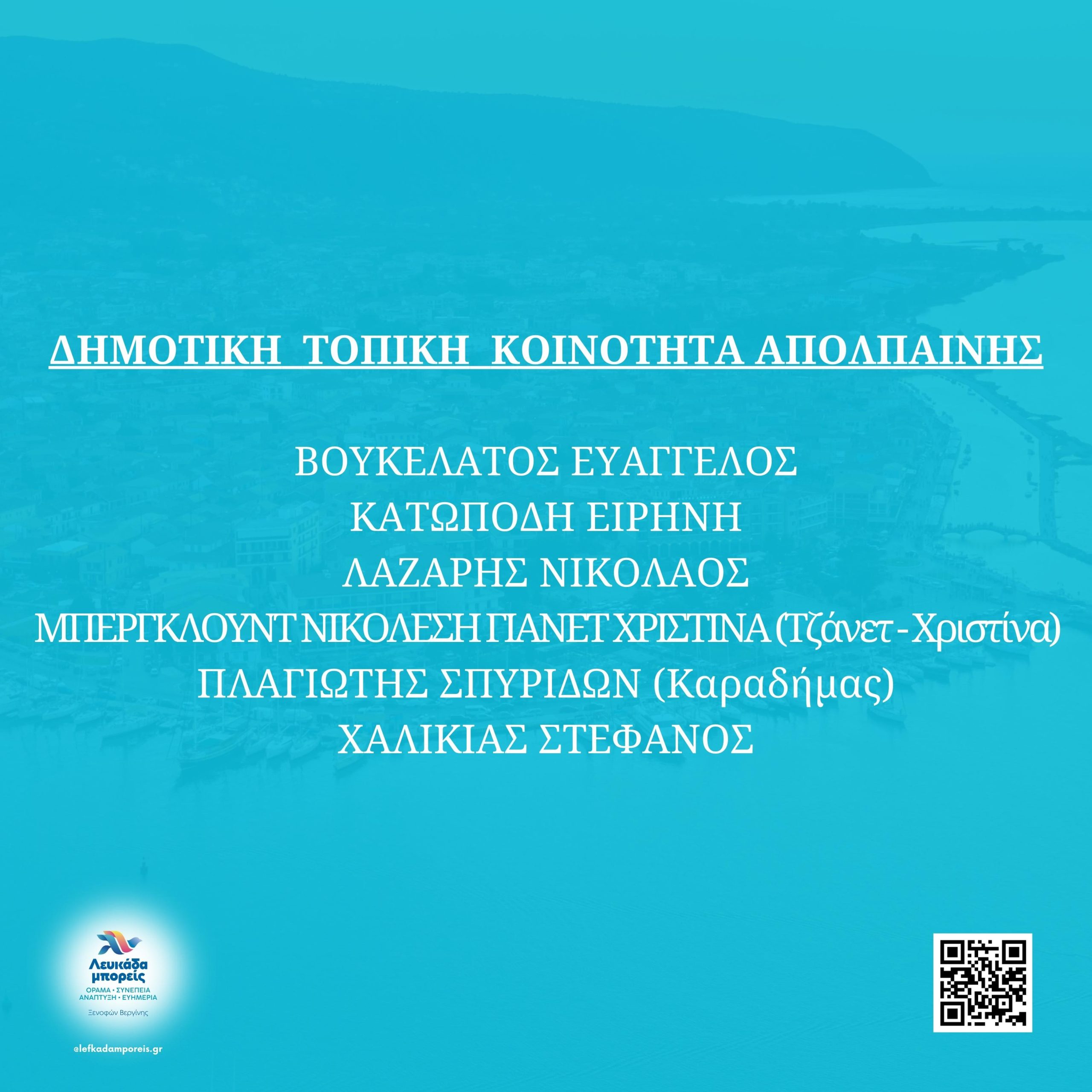 Βεργίνης Ξενοφών Υποψήφιος Δήμαρχος Λευκάδας, “Λευκάδα μπορείς” η ομάδα μας, Δημοτικής Ενότητας Λευκάδας: Υποψήφιοι Τοπικοί Σύμβουλοι